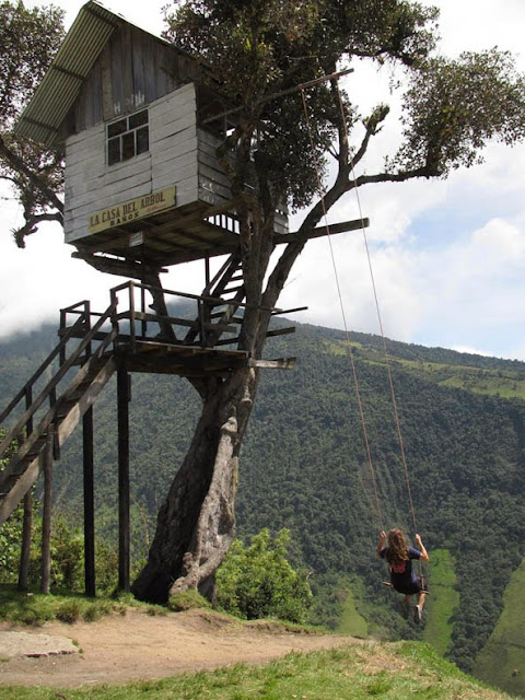 Los columpios suelen ser utilizados por los niños en un patio de recreo, pero este improvisado ingenio conocido como el columpio del fin del mundo es sólo para los aventureros más valientes dispuestos a correr el riesgo de caer por el borde de un acantilado mientras se mece en el aire. Situado en Baños, Ecuador en La Casa del Árbol, este increíble columpio da la bienvenida a los excursionistas a una altura de 2.660 metros. Se invita a cualquiera lo suficientemente atrevido a montarlo.